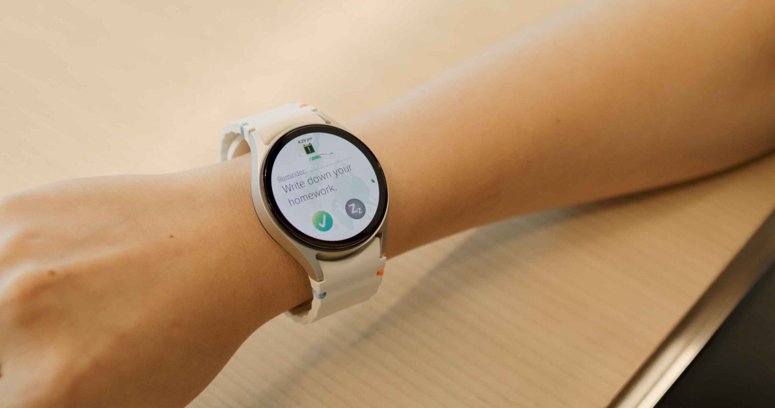 At various points throughout the instructional periods, the watch will send the child periodic vibration reminders to ask if he or she is still focused and on task. The student can tap two times to confirm they’re still engaged, once if they are not.